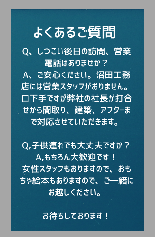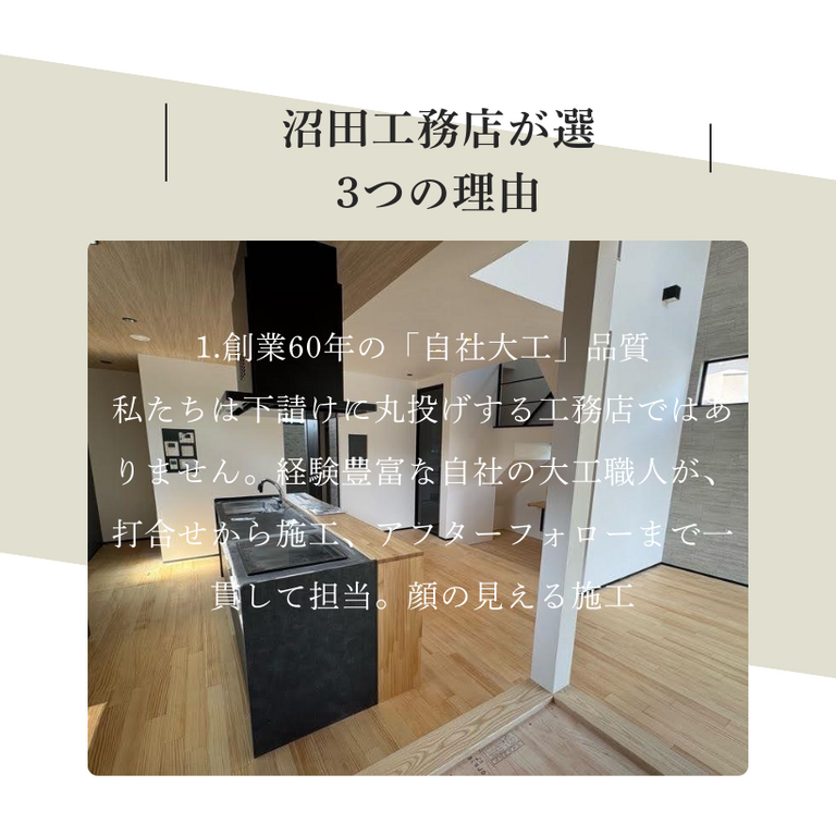 そんな、ちょうどいいバランスを大切にしながら、色々な想いが叶えられる家づくりを、沼田工務店は一緒に考えます。