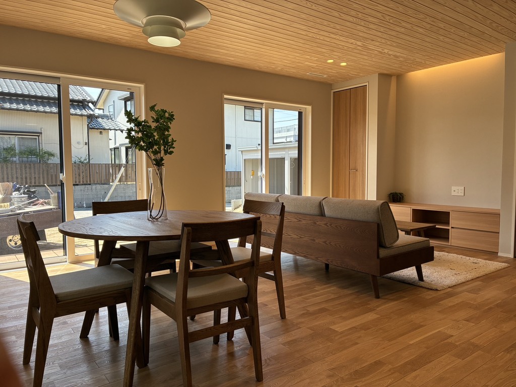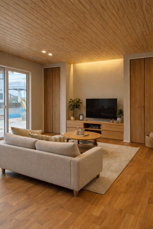 深呼吸したくなる家。 杉の天井と、無垢材に包まれる暮らし。