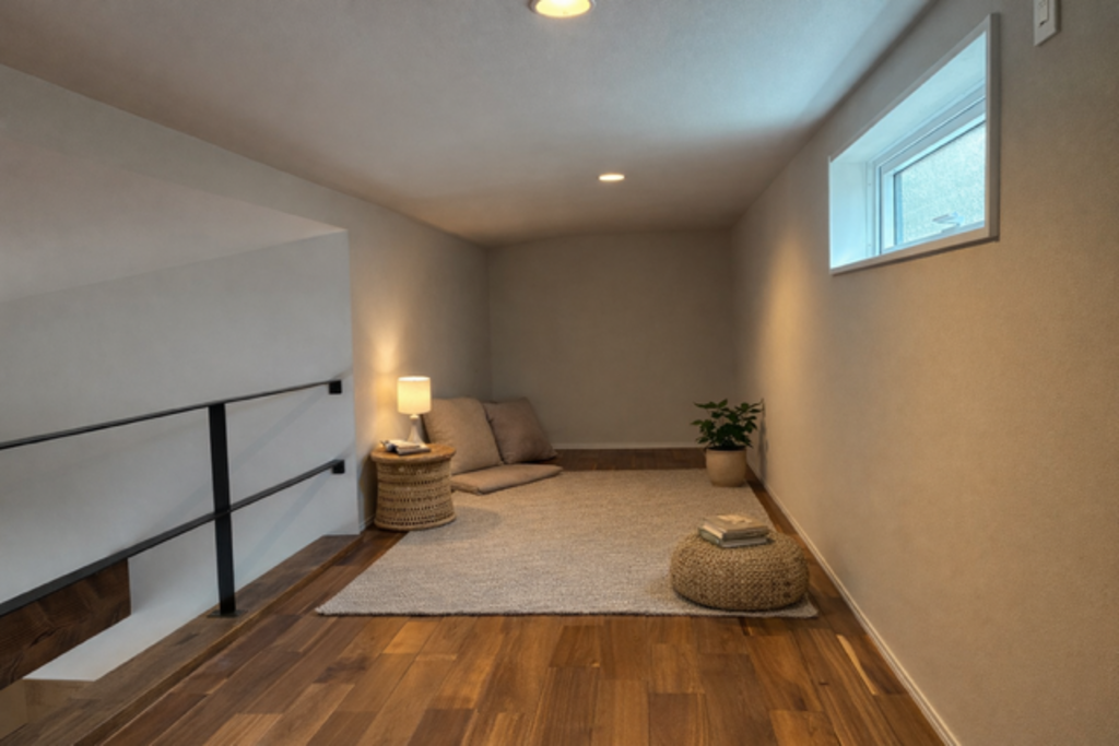 勾配天井を活かして生まれたロフトは、まるで秘密基地のようなワクワクする空間。お子さまの遊び場や趣味のスペース、収納としても活用でき、暮らしに楽しさとゆとりをプラスします。