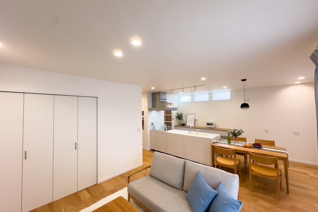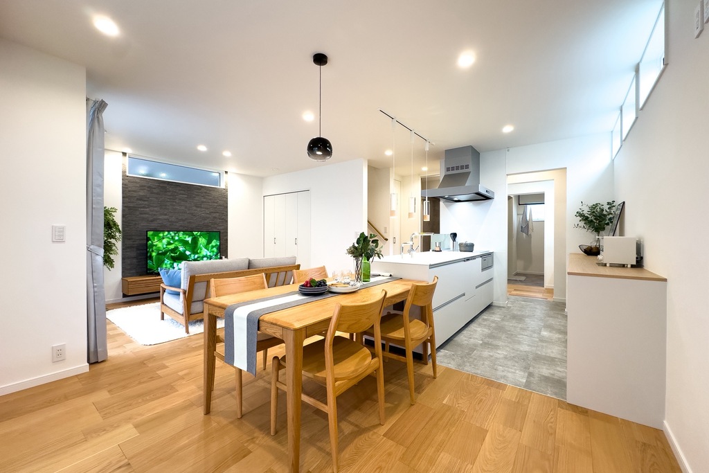 ● この見学会では、オークの優しい木目を使用した内装や、人気のアイランドキッチン、使いやすい回遊動線のリビングを体感できます。