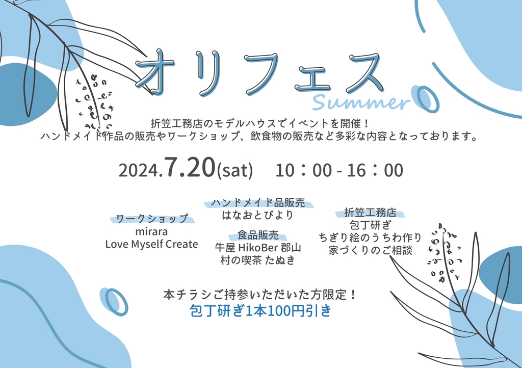 | タイトル | 【2024Summer オリフェス】7/20(土) |
