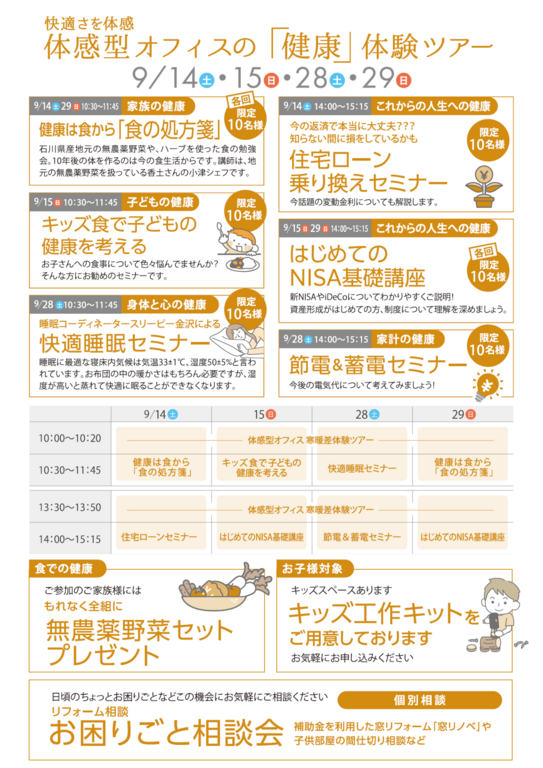 | タイトル | 【体感型モデルハウス兼オフィスOPEN記念】「健康」体験ツアー |