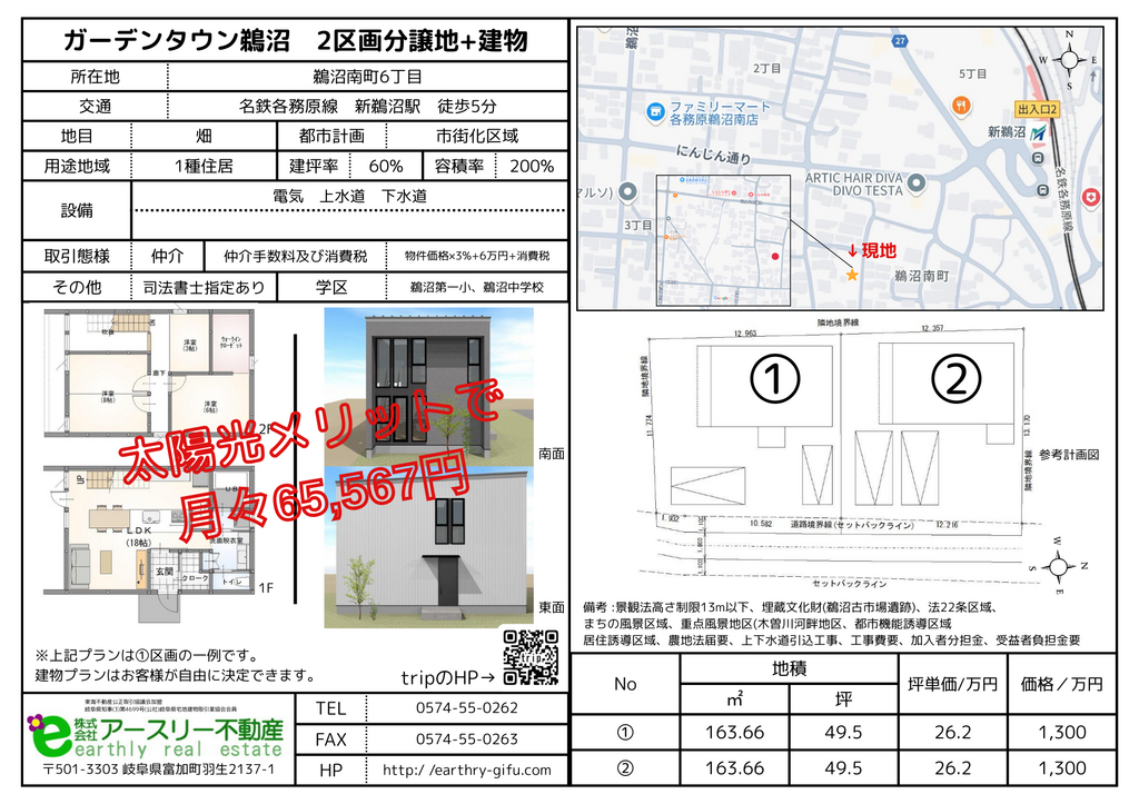 新鵜沼駅から徒歩5分 建物プランは自由に決定 いつでも見学可