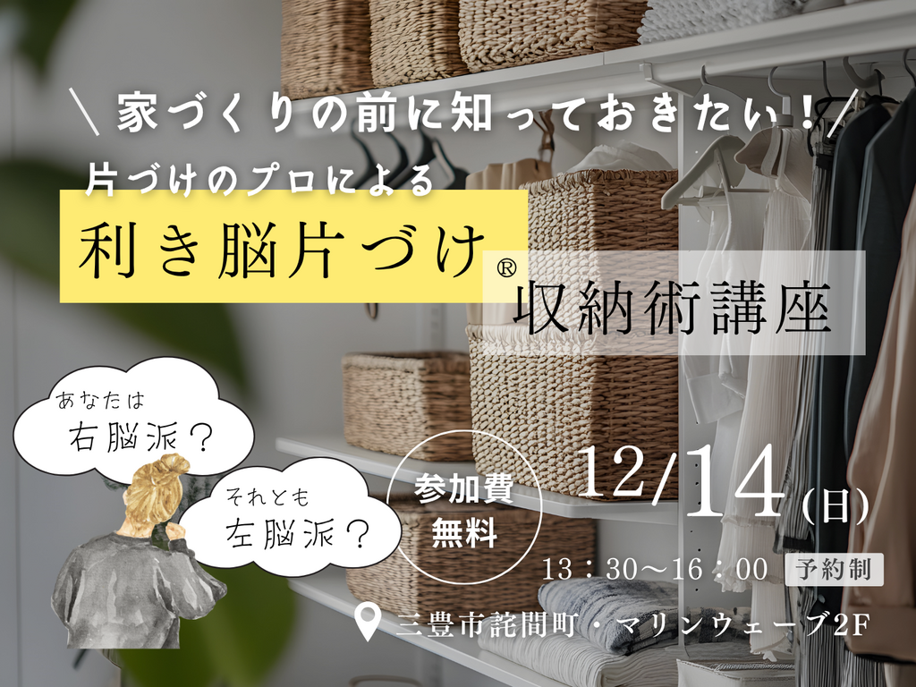 家づくりの前に知っておきたい!【片づけのプロによる 利き脳片付け®収納術講座】