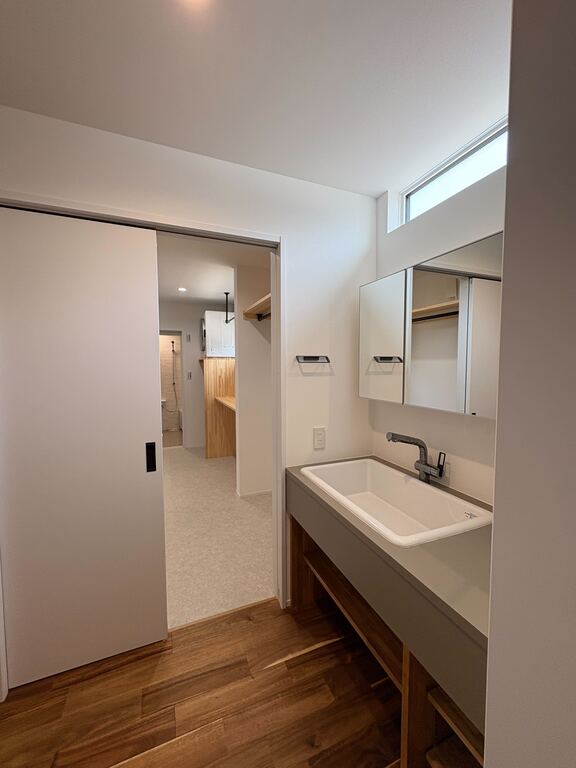 建具や照明の色を統一し、生活動線と見た目のバランスを丁寧に整えています。