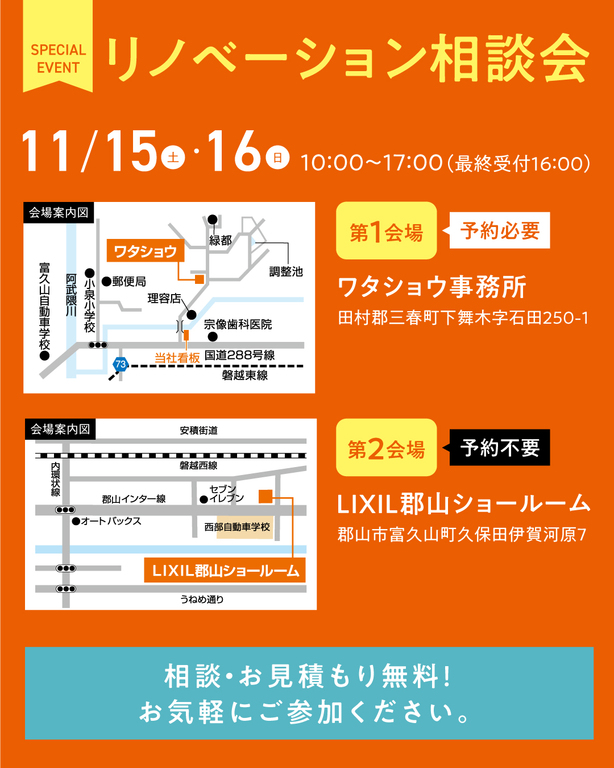| タイトル | リノベーション相談会/郡山会場 |