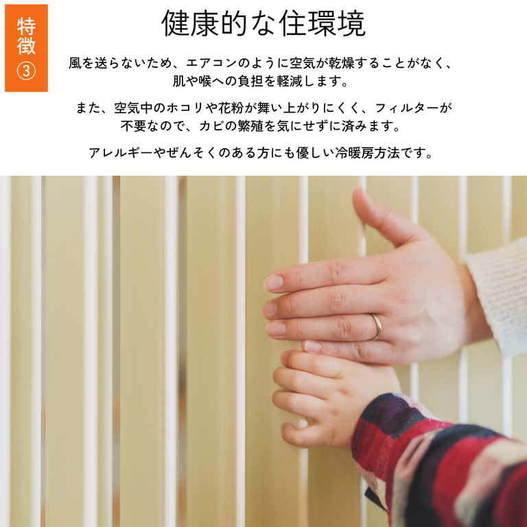 風・音・ニオイのない冷暖房システムで、
