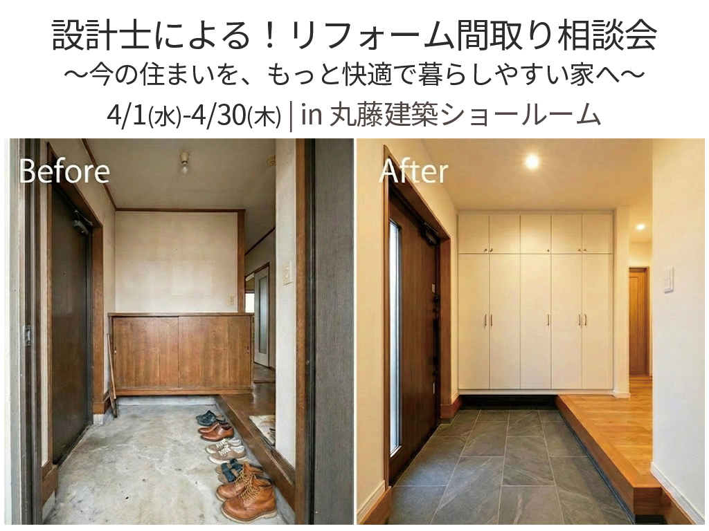 | タイトル | 設計士による!リフォーム間取り相談会 ~今の住まいを、もっと快適で暮らしやすい家へ~ |