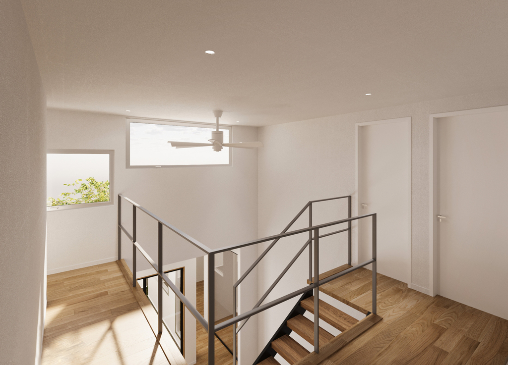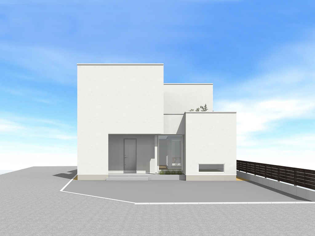 ご覧いただくお家の外観は、ホワイトを基調としており、デザイン性だけでなく窓の高さや配置を工夫し、視線にも配慮したお家です。