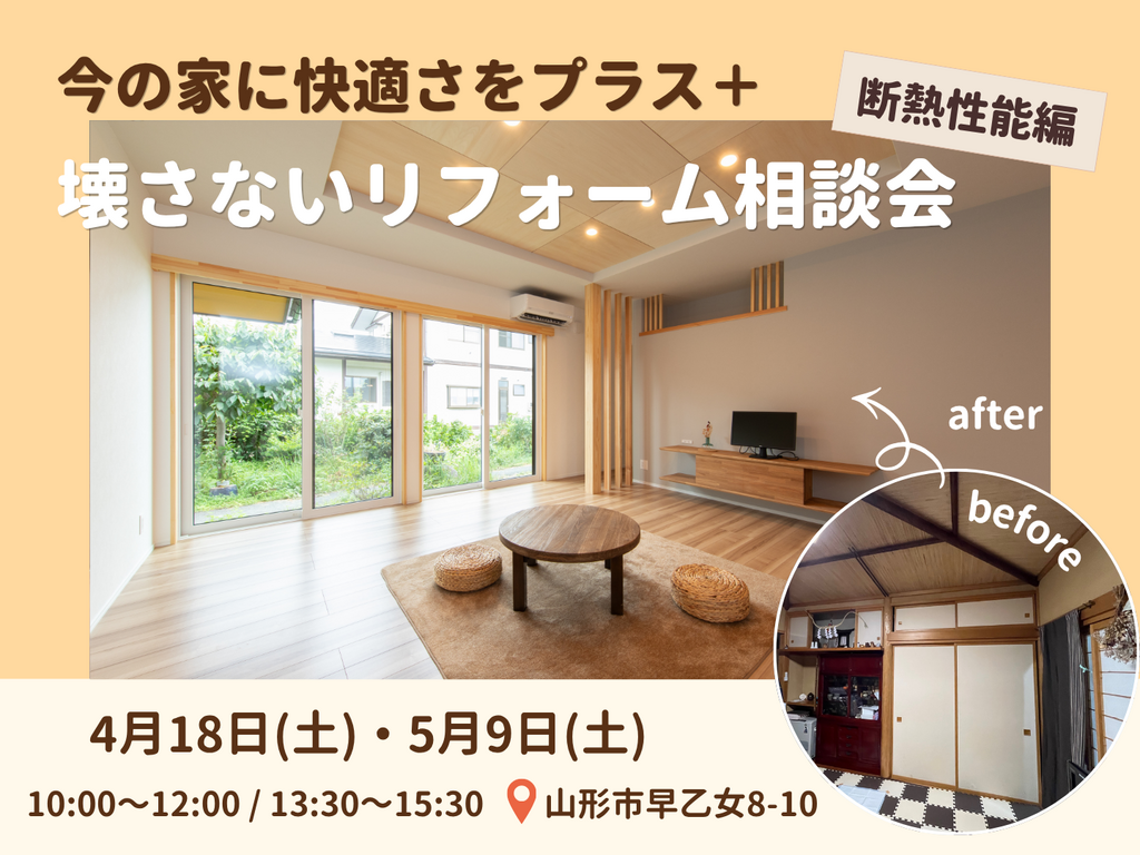 | タイトル | 【山形】今の家に快適さをプラス。壊さないリフォーム相談会《断熱性能編》 |