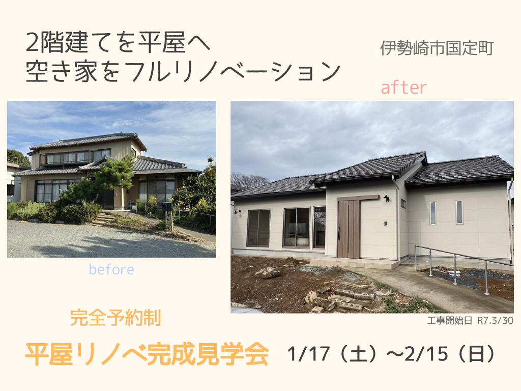 予約制完成見学会|2階建てを平屋へ|空き家をフルリノベーション!