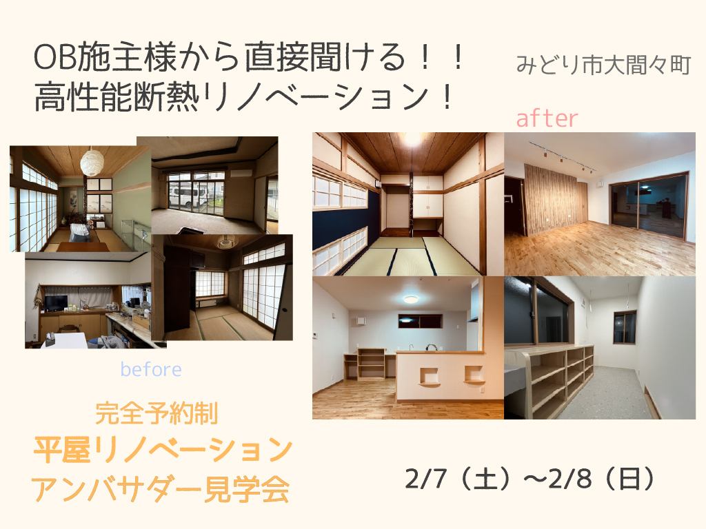 タイトル 予約制アンバサダー見学会|OB施主様から直接聞ける!!|高性能断熱リノベーション!