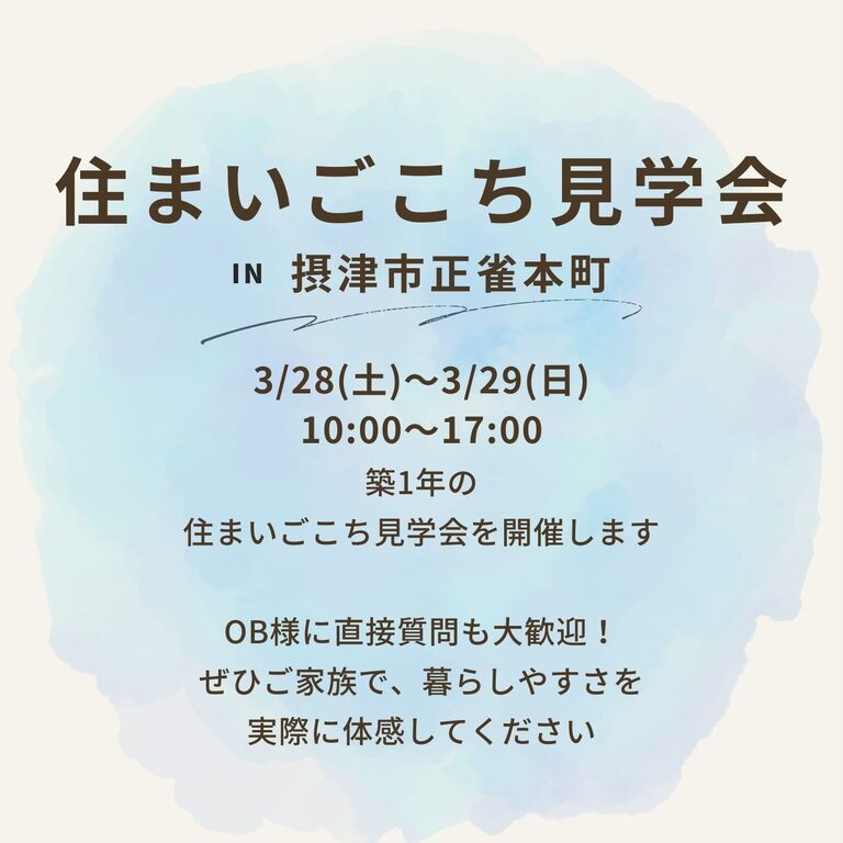 タイトル 【摂津市正雀】築1年の住まいごこち見学会