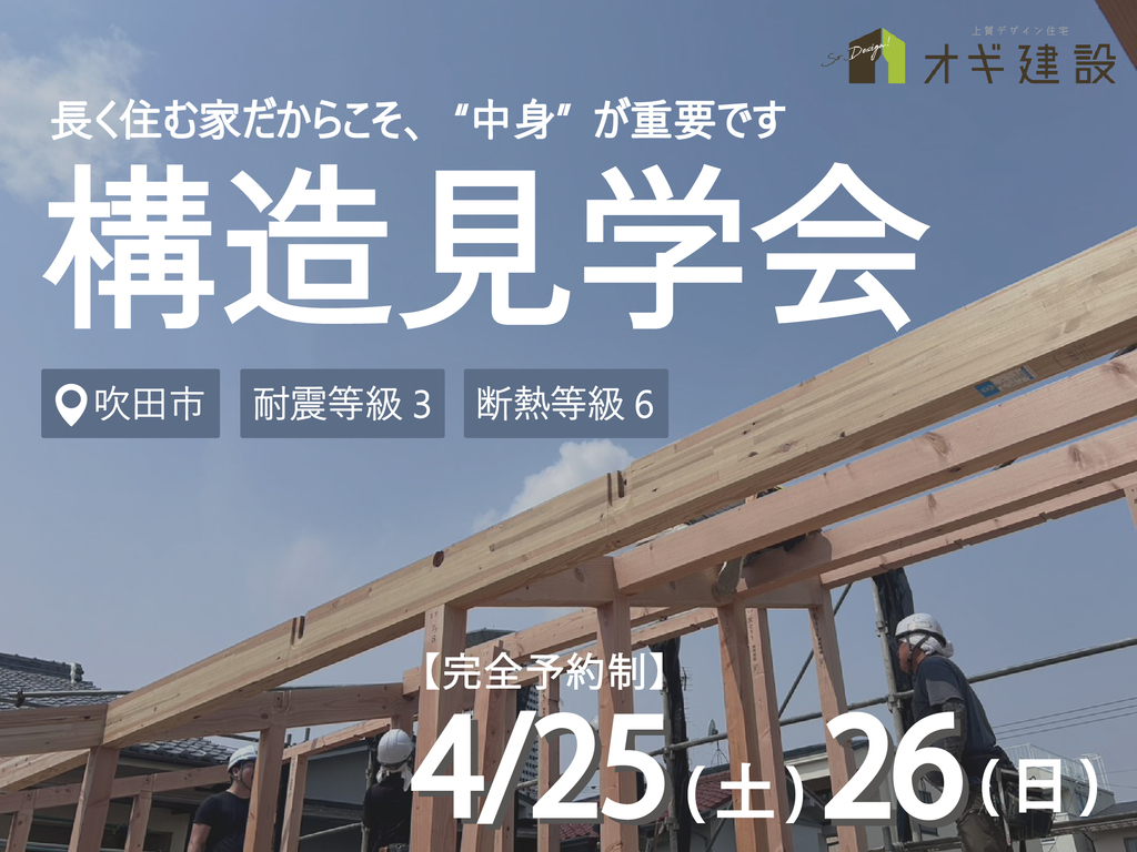 夏はすずしく、冬はあったかいお家の秘密を実際に建築中のお家でご見学いただけます。