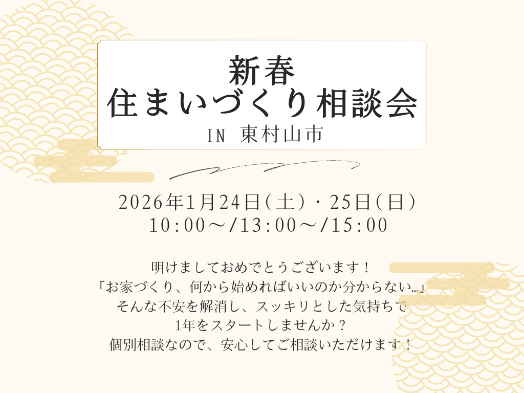 | タイトル | 【東村山工務店】新春!住まいづくり相談会 |