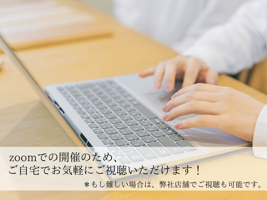 ※zoomが利用できない場合は、弊社店舗でのご視聴も可能です。お気軽にお申し付けください。