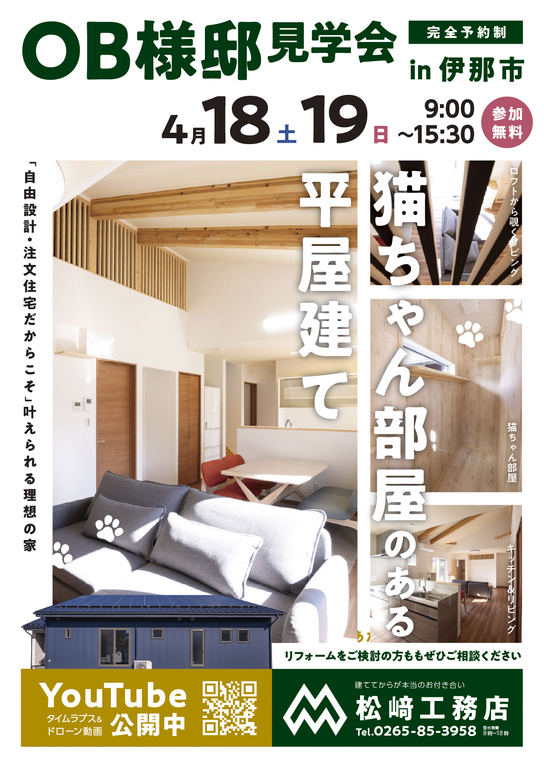 | タイトル | 猫ちゃん専用部屋のある平屋建て:OB様邸見学会 |