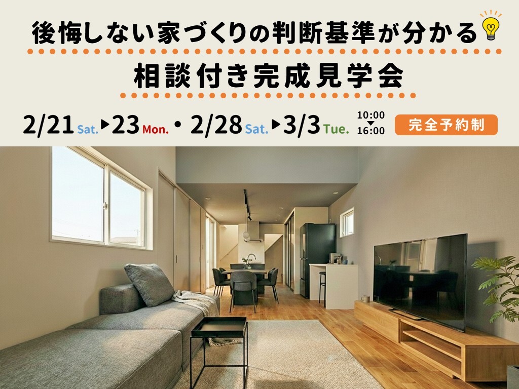 | タイトル | 後悔しない家づくりの判断基準が分かる 相談付き完成見学会 |