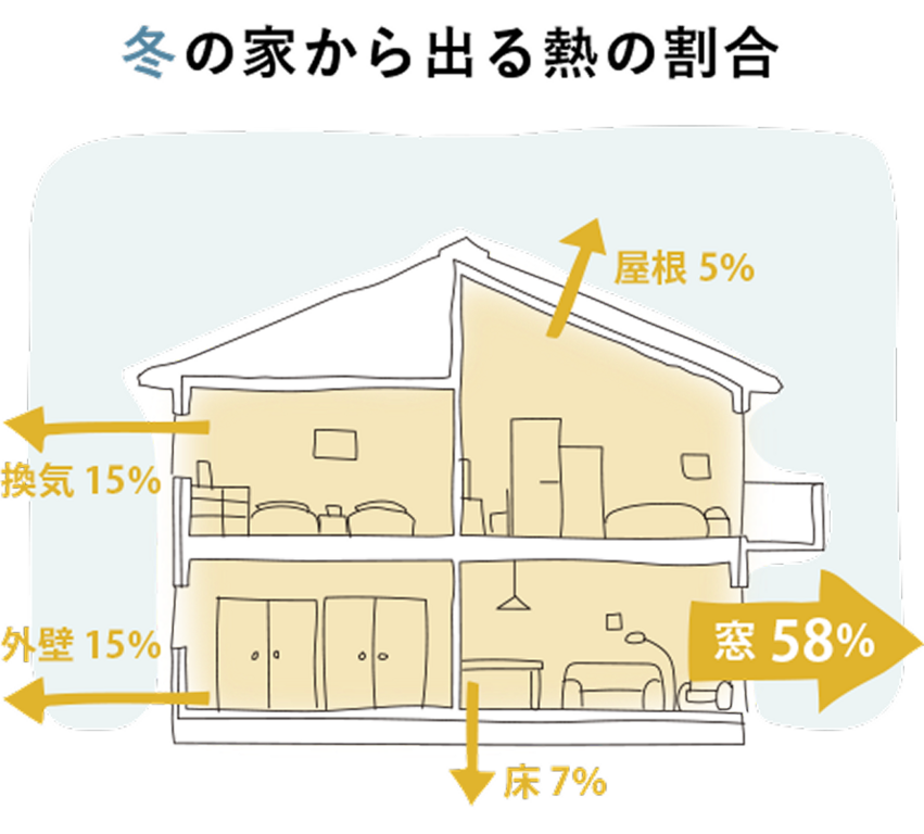 住まいの中で、熱の出入りが一番大きいのは窓です。