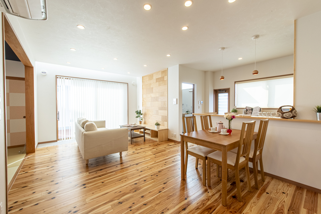 モデルハウスをご覧になった方からは、「無垢材の床がとても気持ちいい。木の香りもして居心地が良かった」「玄関からキッチンに抜ける間取りが便利」「備え付けの棚などの造作がとても丁寧で、仕上がりがきれいでした」などの声をいただいています。真夏でも真冬でも過ごしやすい高気密・高断熱の室内環境に驚かれる方も大勢いらっしゃいました。