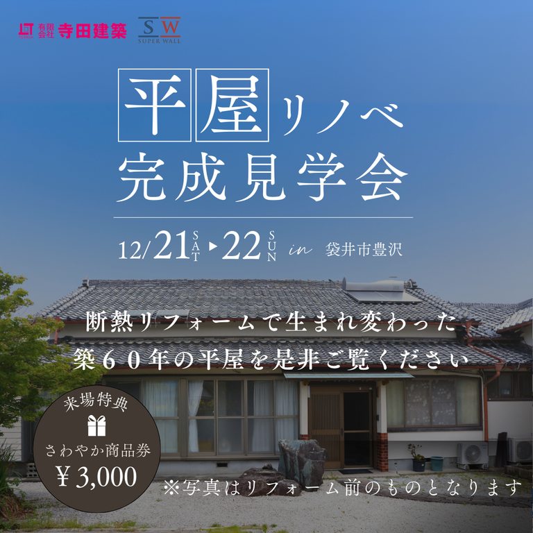 | タイトル | 実邸リノベ見学会|高断熱・高耐震住宅に生まれ変わった築60年の平屋 |