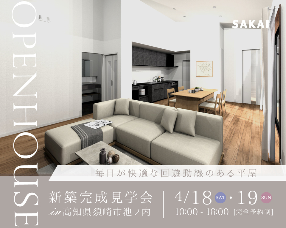 | タイトル | 新築完成見学会「毎日が快適な回遊導線のある平屋」|高知県須崎市池ノ内 |