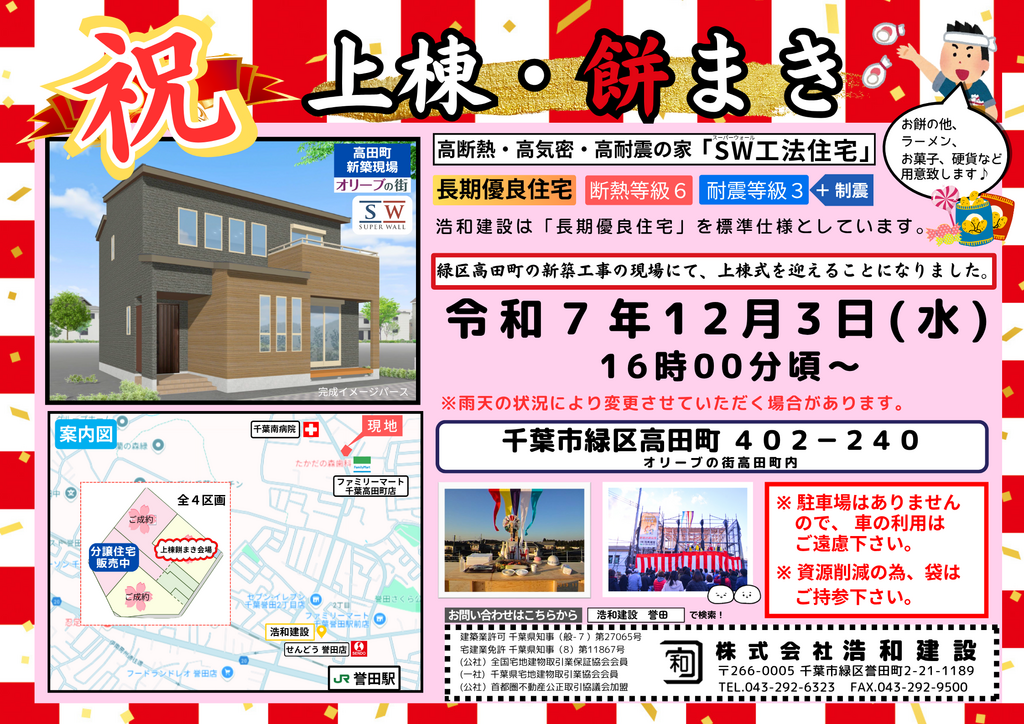 【新築注文住宅】 オリーブの街高田町 上棟&餅まき開催!