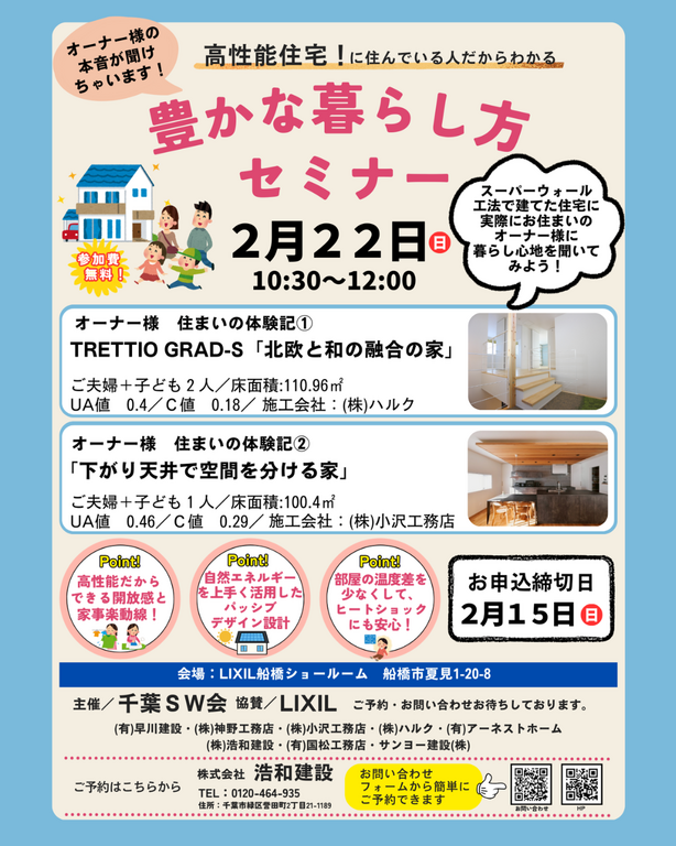 高性能住宅に住んでいる人だからわかる『豊かな暮らし方セミナー』