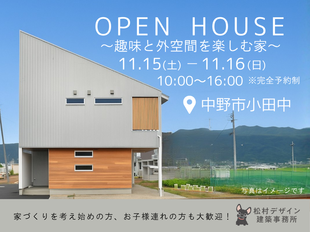 タイトル | 《中野市小田中》OPEN HOUSE~趣味と外空間を楽しむ家~ |