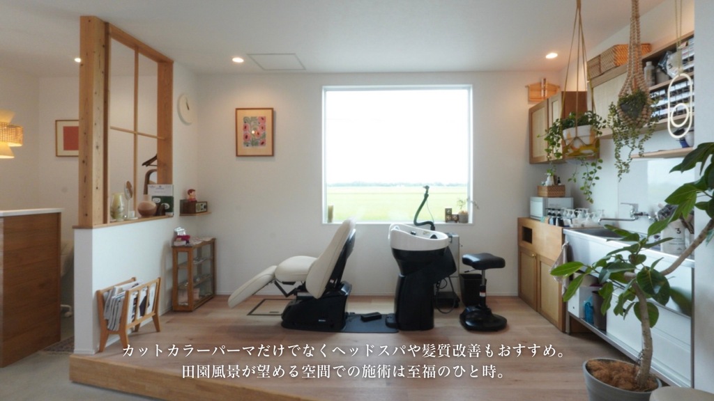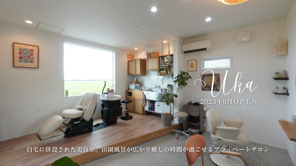 10坪のコンパクトなプライベートサロンで、北面のからは田んぼが一望できるピクチャーウィンドウで癒しを与えます。