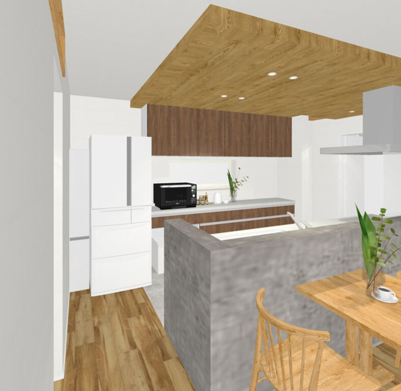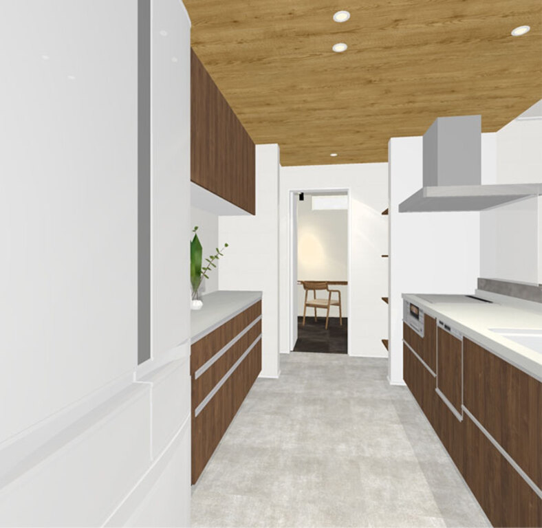 家の中心として家族が自然と集まる場所なので、素材感にこだわり、毎日キッチンに立つたび気分が上がる空間に仕上げました。