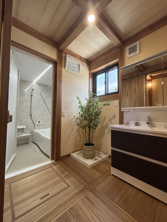 2階にも洗面コーナーを設置し朝の混雑緩和