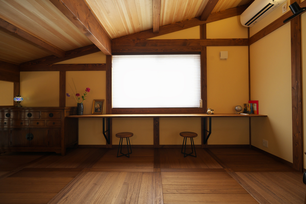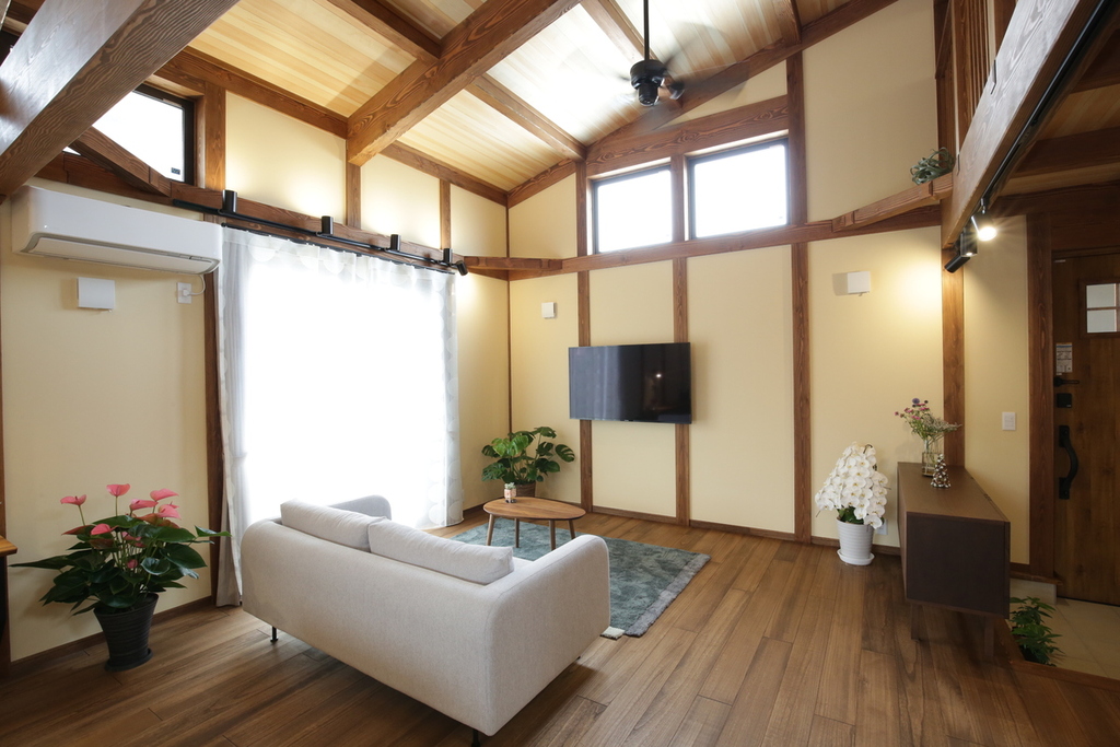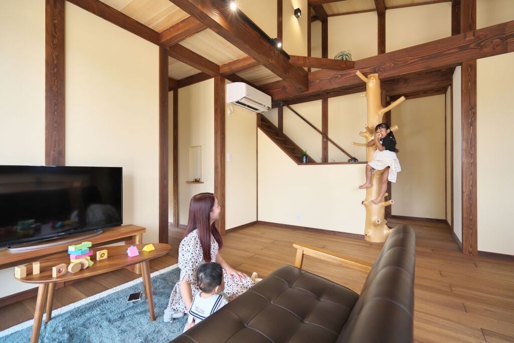 - 無垢の登り梁の天井