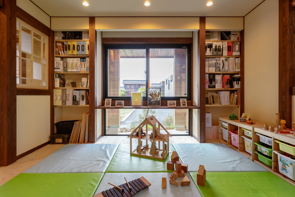 ● 赤ちゃんの素肌にも安心な自然素材に包まれた室内環境。手触り、香り、湿度、音まで五感で体感してみよう。