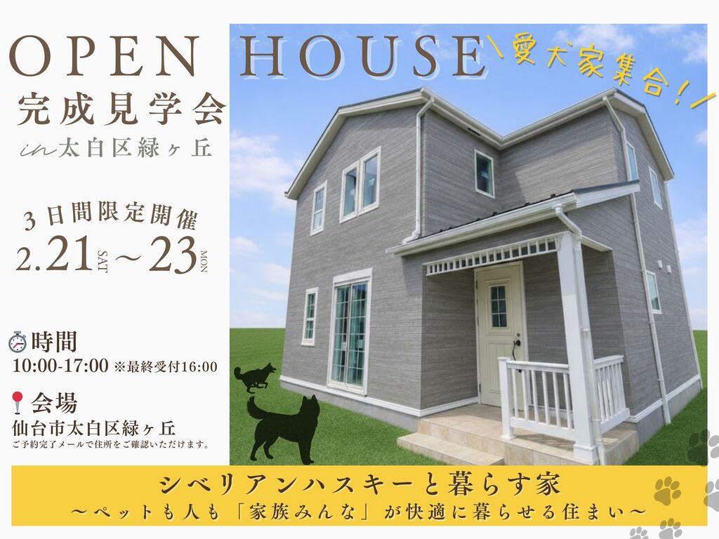 | タイトル | 愛犬家集合! ハスキーと暮らす家 完成見学会 |
