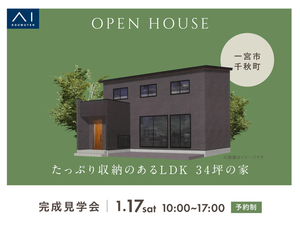 | タイトル | 一宮展示場 《一宮市千秋町》たっぷり収納のあるLDK 34坪の家 完成見学会 |