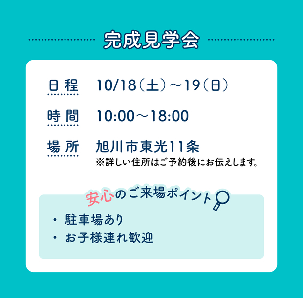 | タイトル | アイメッセ旭川(複合型住宅展示場) 趣味も家族も 欲張りに楽しむ家 完成見学会 |