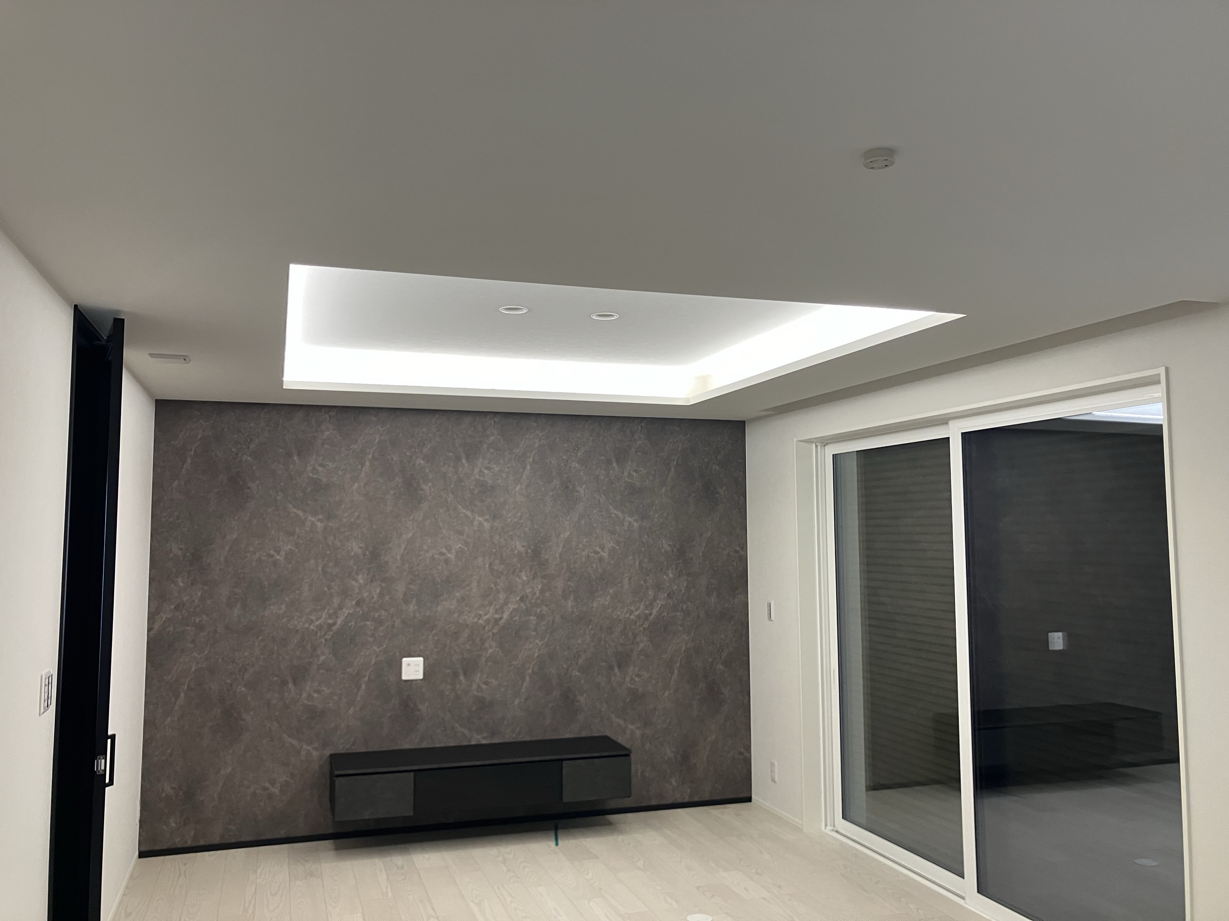 照明や素材の工夫も相まって、昼も夜も表情豊かに暮らしを彩る、心地よいデザインです。天井の“ひと工夫”が、住まい全体の印象を変えます。