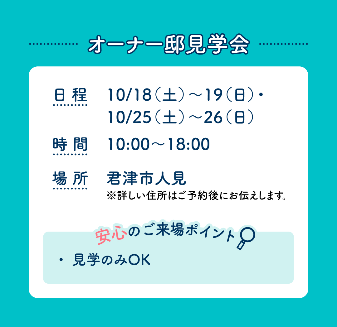 アイ工務店の『住まいの勉強会』は、オーナー邸・完成見学会・モデルハウスを見学できる年2回の期間限定特別イベントです!