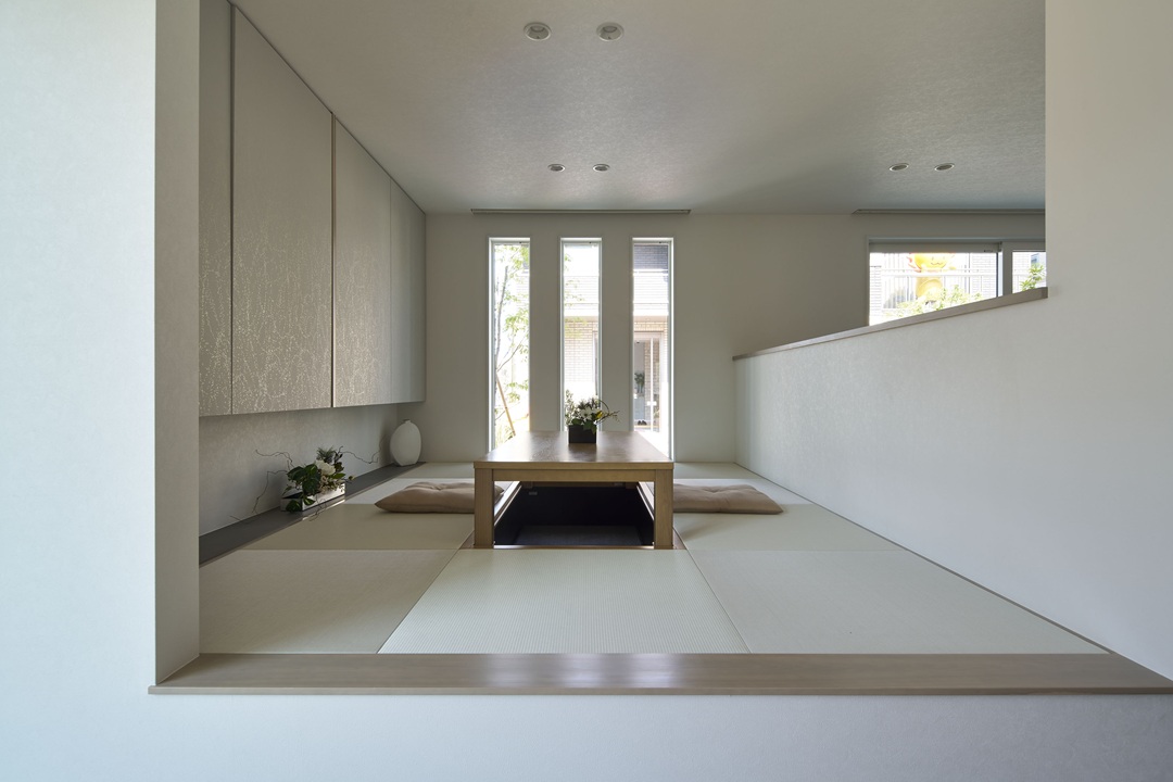 ハーフ収納の上に配置された1.5階の和室は、落ち着いた特別な空間。