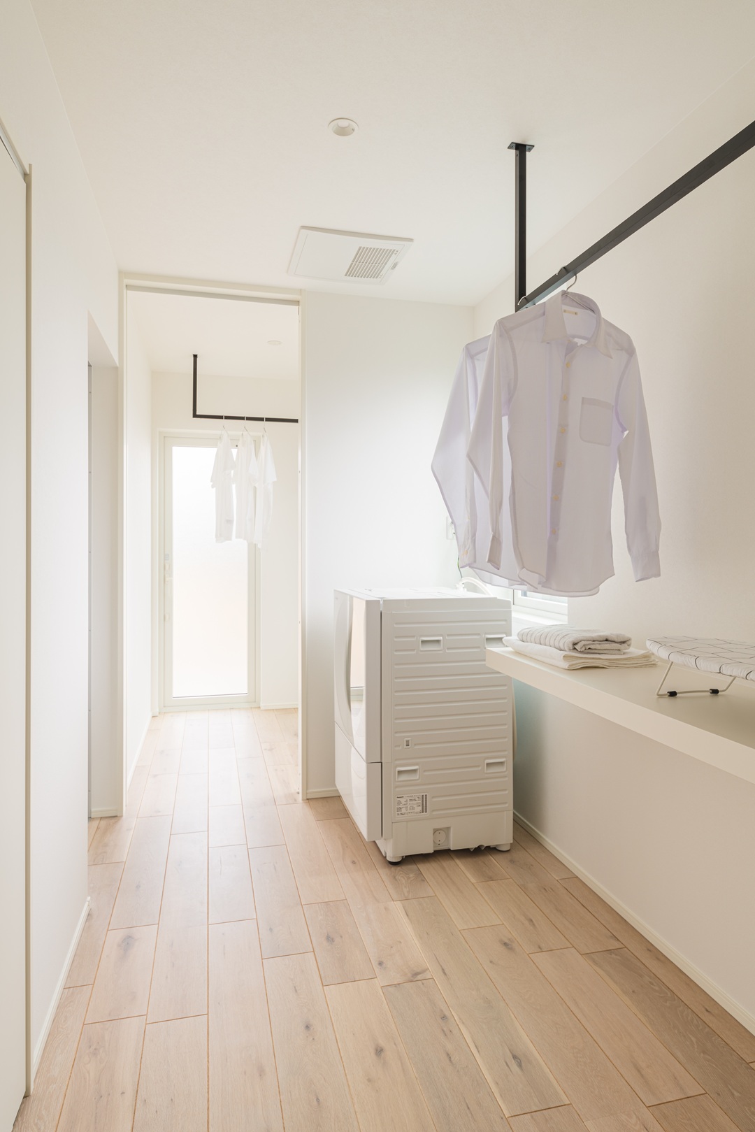 家事動線をまとめた為、無駄に動くことなくコンパクトに家事をこなせます。家事の負担を減らし、自分・家族時間を確保しやすくしています!