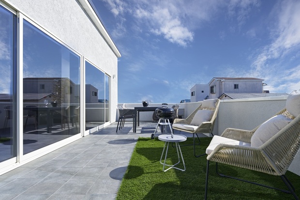 2階に設けたバルコニーは、洗濯を干す事はもちろん、ガーデニングを楽しんだり、ちょっとした椅子やテーブルを出してお茶を楽しむのにも十分な広さです。