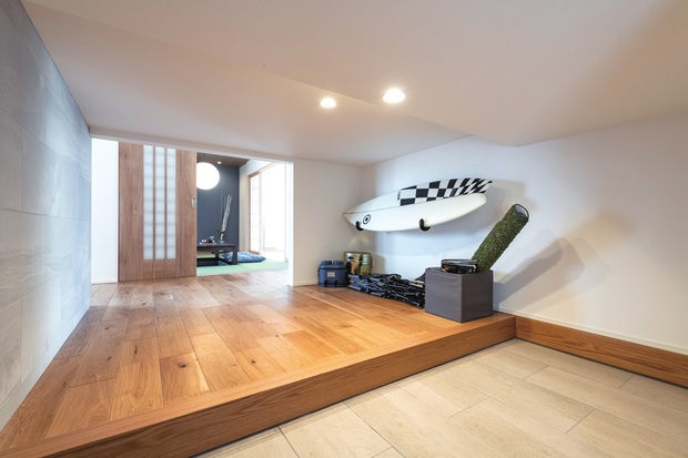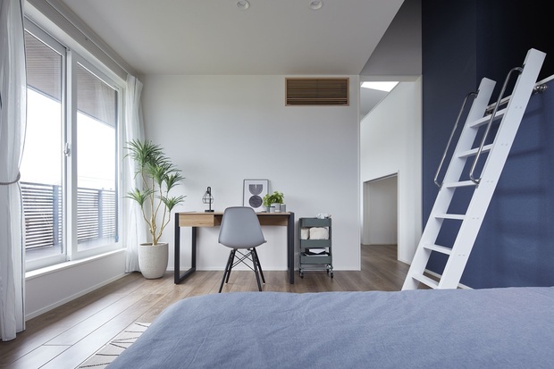 2階のゲストルームはロフトとLDKを見渡せる室内窓が付いていて