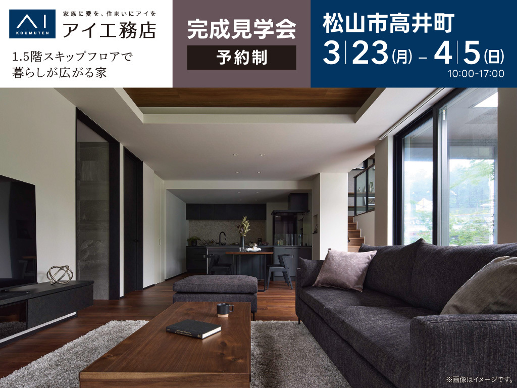 | タイトル | 松前展示場<松山市高井町>1.5階スキップフロアで暮らしが広がる家 |