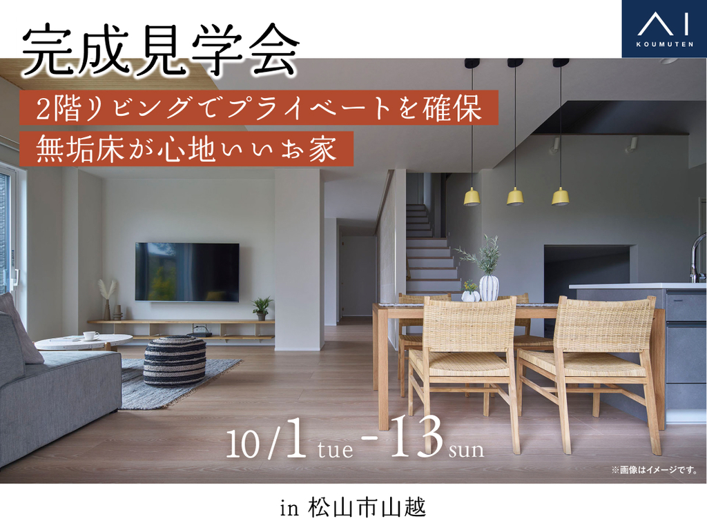 | タイトル | 松山第二展示場 《松山市山越》2階リビングでプライベートを確保・無垢床が心地いいお家 |