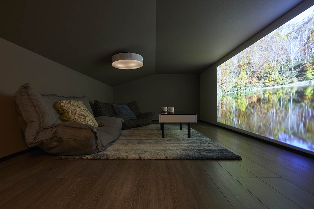迫力ある映像を自宅で楽しめるシアタールームを完備。