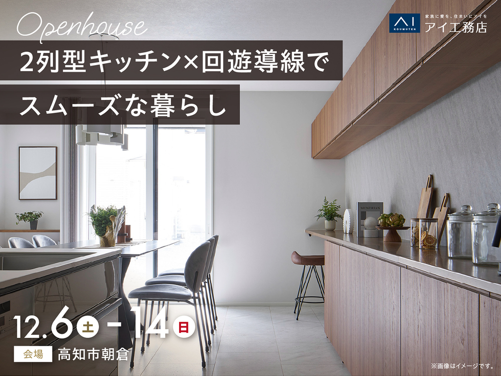 | タイトル | 高知展示場 《高知市朝倉》2列型キッチン×回遊導線でスムーズな暮らし 完成見学会 |
