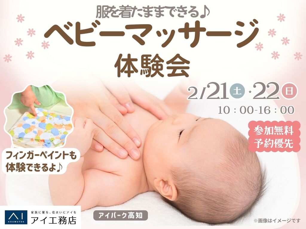 | タイトル | アイパーク高知(複合型住宅展示場) ベビーマッサージ体験会♪フィンガーペイント付き |