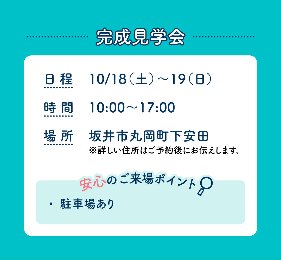 | タイトル | アイメッセ福井(複合型住宅展示場) 家族がゆったり寛ぐ大空間の平屋 完成見学会 |