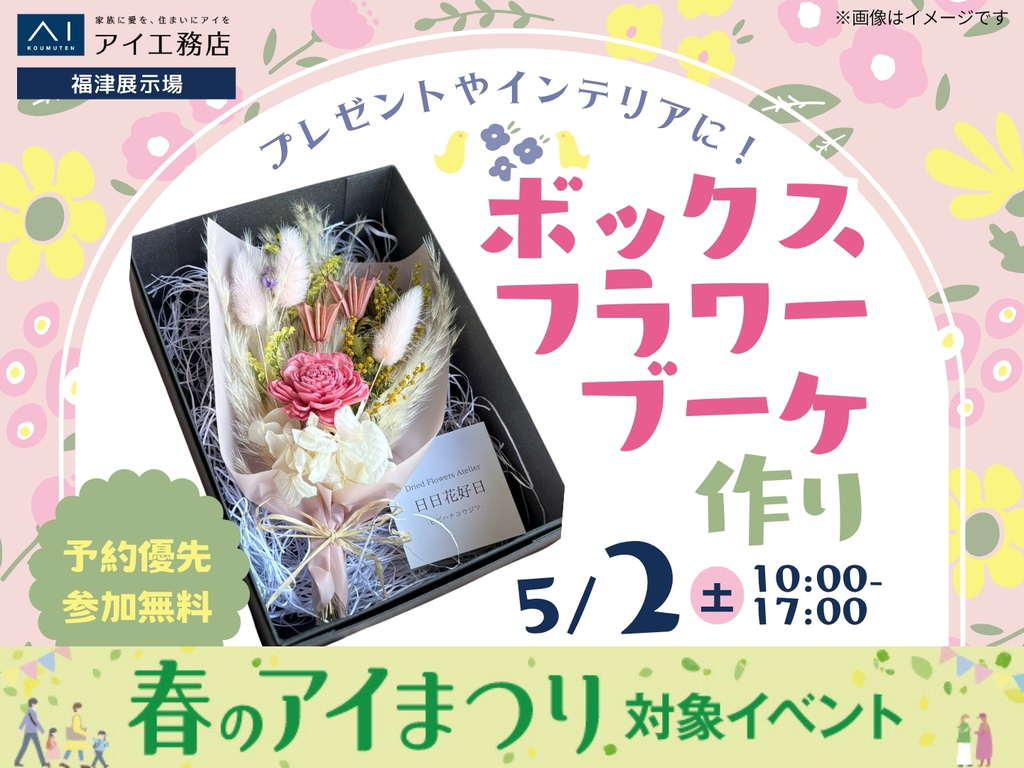 | タイトル | 福津展示場 プレゼントやインテリアに!ボックスフラワーブーケ作り |
